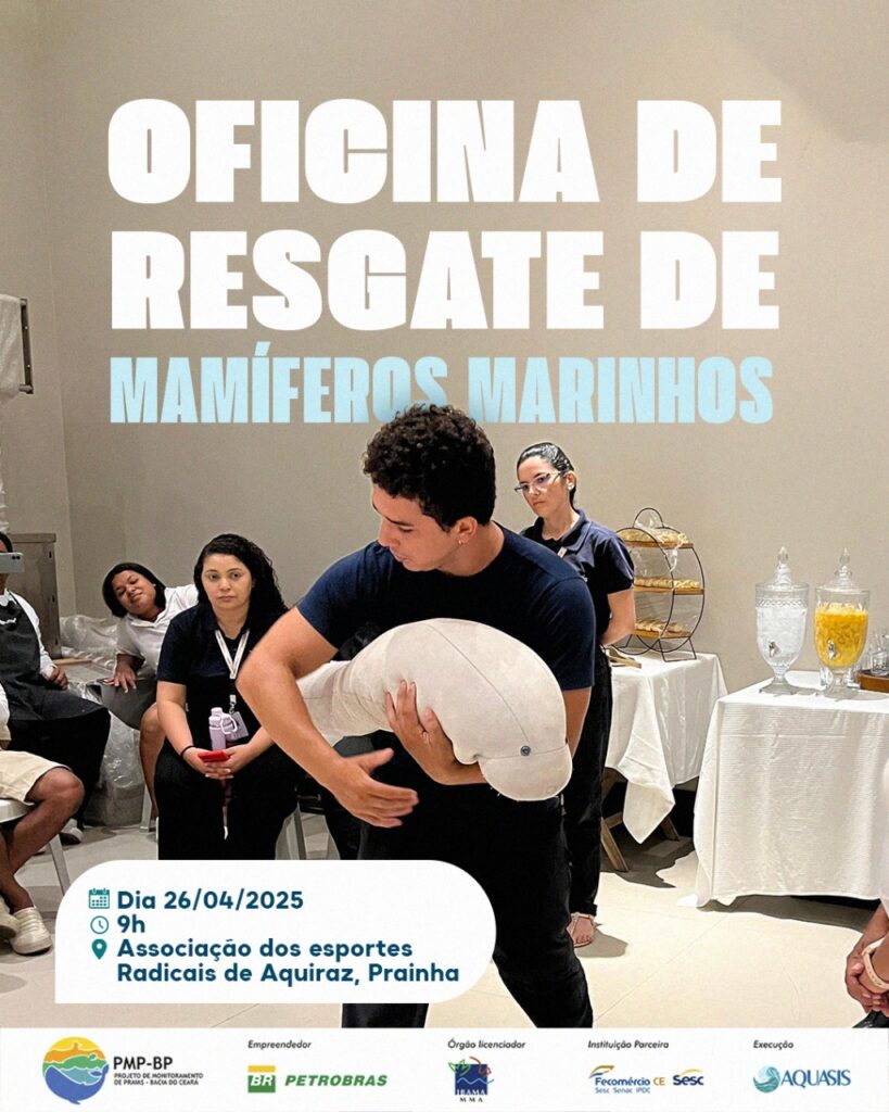 A oficina foi promovida em parceria com a AQUASIS – Associação de Pesquisa e Preservação de Ecossistemas Aquáticos, uma organização referência na conservação da biodiversidade no Nordeste, especialmente no estado do Ceará. Ao longo dos anos, a AQUASIS tem apresentado resultados que inspiram a sociedade quanto à preservação de espécies ameaçadas de extinção, contribuindo significativamente para o conhecimento e proteção dos ecossistemas marinhos e costeiros.