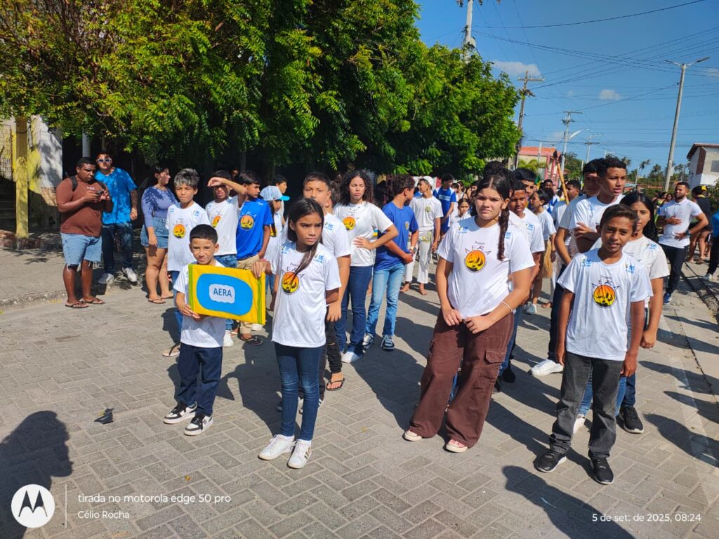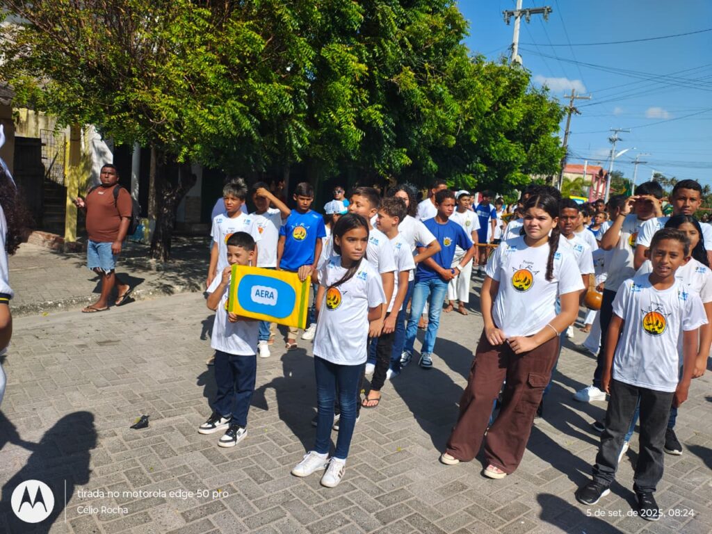 Aquiraz (CE) – O tradicional desfile cívico de 7 de Setembro, realizado pela EMEF Rita Paula de Brito, contou com a participação especial da AERA Escolinha, que marcou presença levando às ruas de Aquiraz a força do esporte, da cultura e da cidadania.